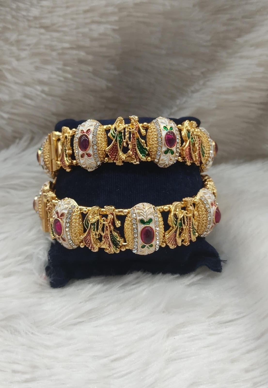 The Vivah kada is a timeless symbol of devotion, representing the sacred union of two souls. Each wear reminds you of love's enduring promise and its spiritual connection. Crafted to honor this profound bond, it serves as a cherished emblem of togetherness and mutual dedication. Perfect for celebrating the journey two hearts share together.